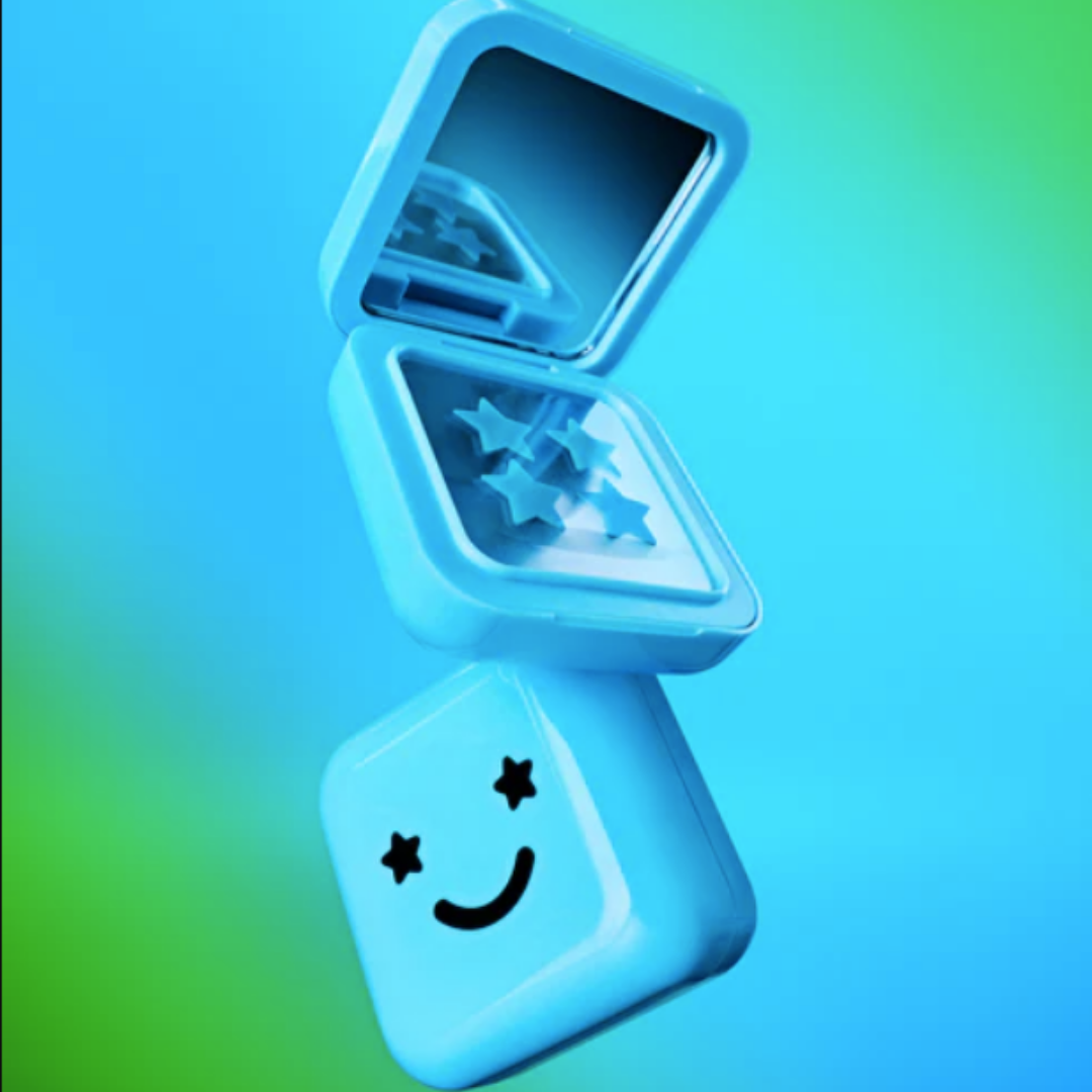- Compacto recargable: cuando se acaben las estrellas, rellena con tus parches favoritos.